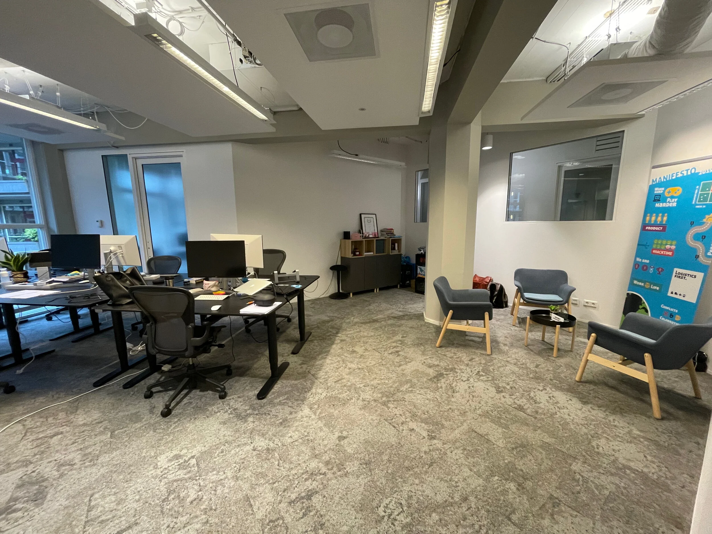 Vanaf begin dit jaar gingen we door onze stagiaires Huguette en Roos van een team van 4 personen naar een team van 6 personen. Dit gaf ons de mogelijkheid om af te tasten hoe we om moesten gaan met onze kantoorruimte voor een grotere groep. Op de meeste dagen was er genoeg plek, maar op de teamdagen was het toch echt te klein. De oplossing was om te verspreiden over vergaderzalen, maar daardoor waren we toch ook weer niet echt bij elkaar. We wisten toen dat we na Corona een andere oplossing zouden moeten verzinnen.